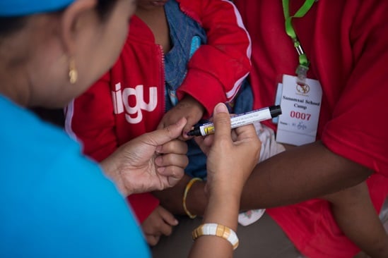 Vaccination campaign to prevent outbreak of measles and polio among survivors of the typhoon